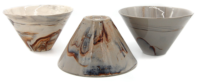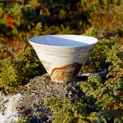 Kaiun värit tulevat luonnosta. Kulhosta voi nauttia puuroa, jälkiruokaa tai höyryävää keittoa. Valmistan Kaiku-kulhot savimassasta avovaluna suunnittelemassani muotissa. Pinnan kuviointina olen käyttänyt värjättyä massaa ja siirtokuvia. Kaiun pohjassa on syvennys, josta sitä on helppo kannatella.
